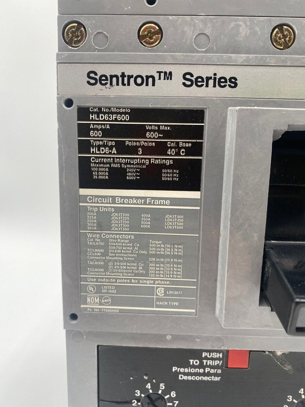 Siemens HLD63F600 Circuit Breaker 600A 3P 600V 3PH HLD6-A 600 AM 3 Pole Sentron HLD63B600 Condition Notes: With trip unit