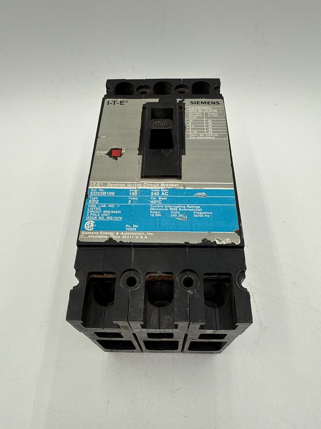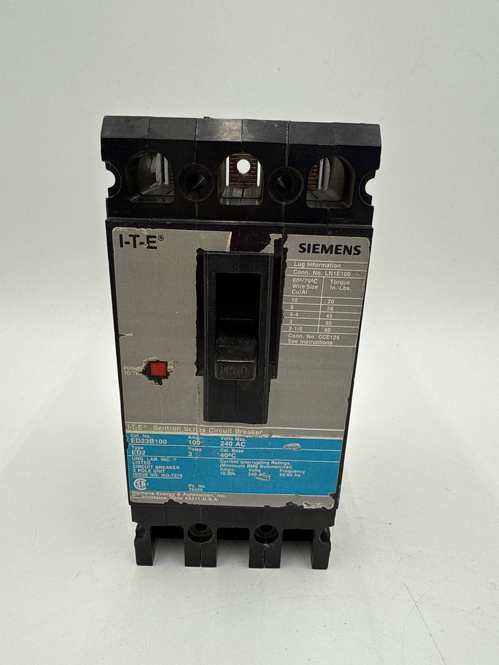 Siemens ITE ED23B100 Circuit Breaker 100A 3P 240V ED2 100 Amp 3 Pole