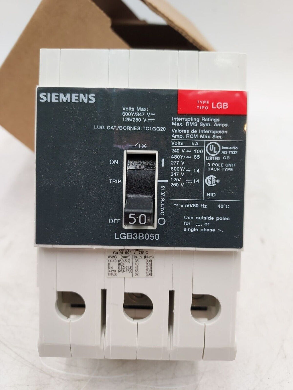 SIEMENS LGB3B050B 50A 480V NEW BOLT ON