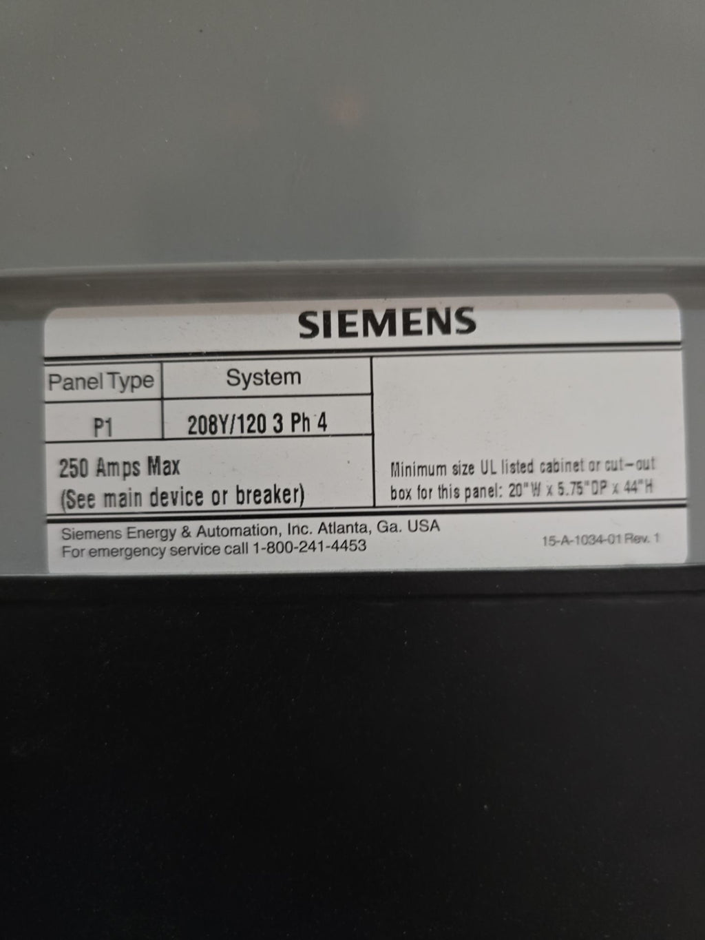 Siemens P1 P1C42ML250ABF Panelboard 250A 208/120V 3PH 4W MLO 42Cir 250 Amp Panel