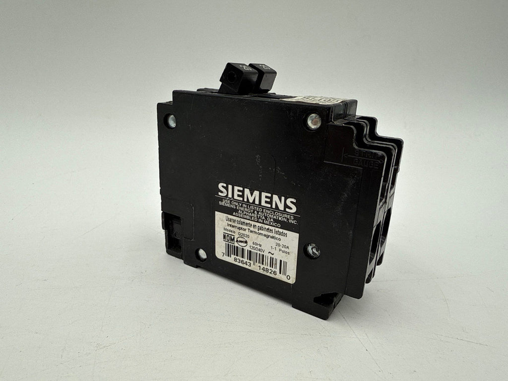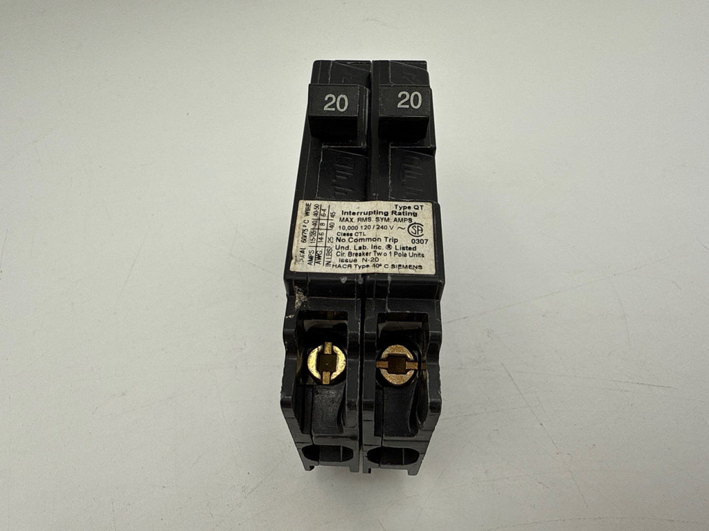 Siemens Q2020 Circuit Breaker 20A-20A 120/240V 20 Amp Tandem Single Pole Type QT Two 1Pole