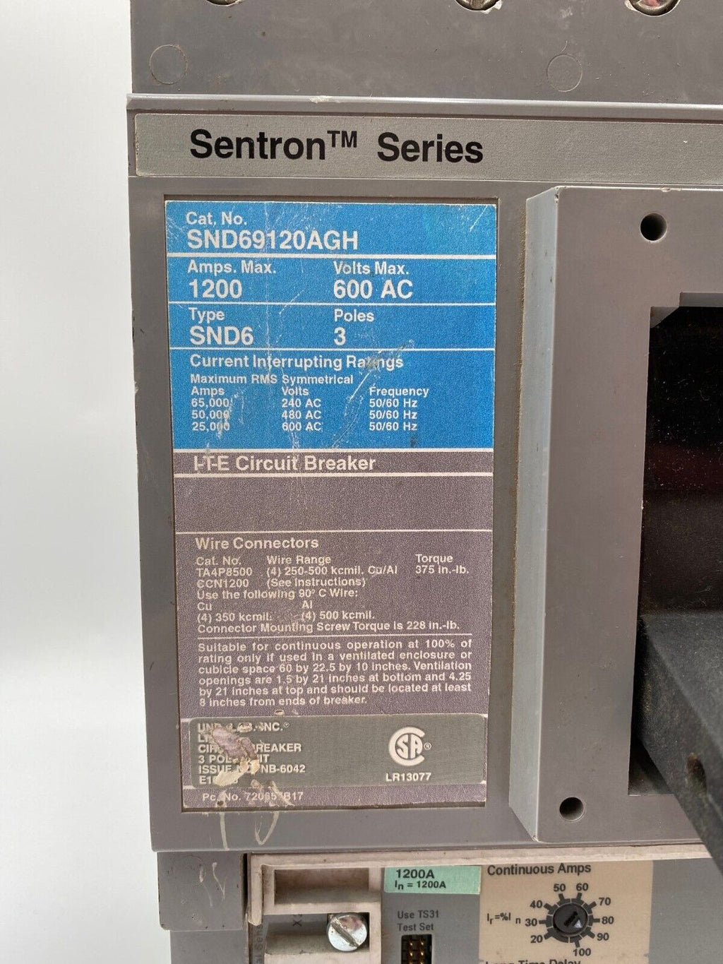 Siemens SND69120AGH Circuit Breaker 1200A 3P 600V 3PH SND6 1200 Amp 3 Pole LIG- Long time, Instantaneous and Ground Fault Trip Functions Condition Notes: No lug covers