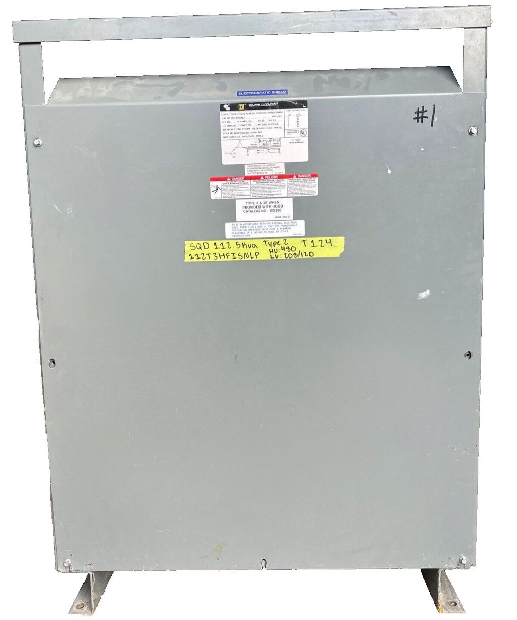 112.5KVA Square D 112T3HFISNLP Transformer HV 480V LV 208Y/120V 3PH NEMA 1 60 Hz Weight: 1205lb