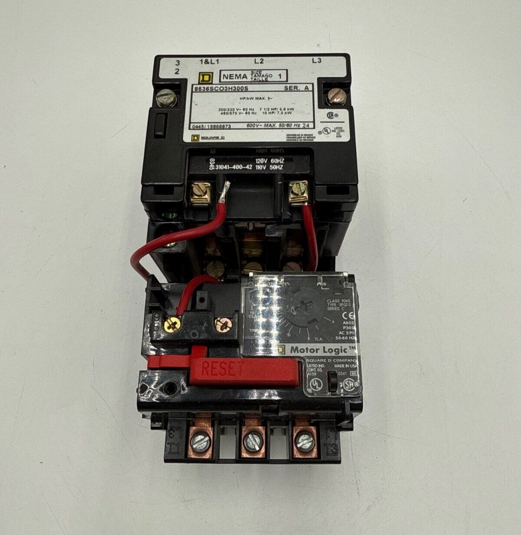 Sq D 8536SCO3H300S Starter Size 1 27A 3P 600V Coil 110/120V Overload 9065SF020