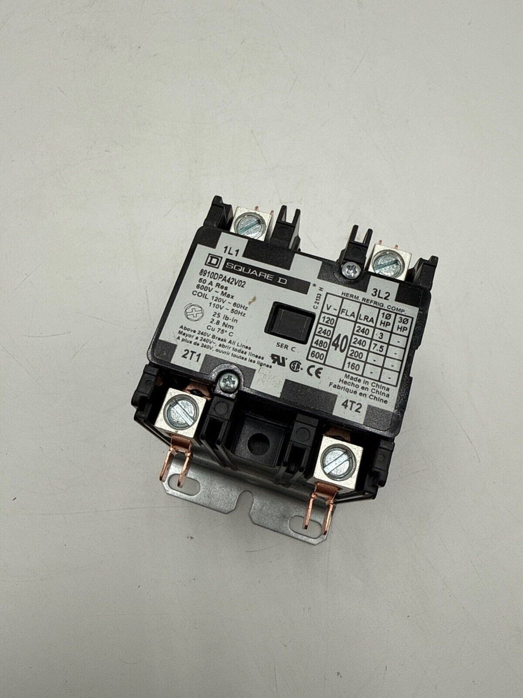 Square D 8910DPA42V02 Definite Purpose Contactor 2 Pole Open 40FLA 50A Res 600V Coil 110/120V