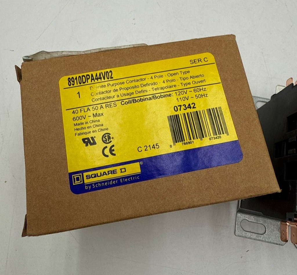 Square D 8910DPA44V02 Definite Purpose Contactor 40FLA 4P Open Coil 110/120V
