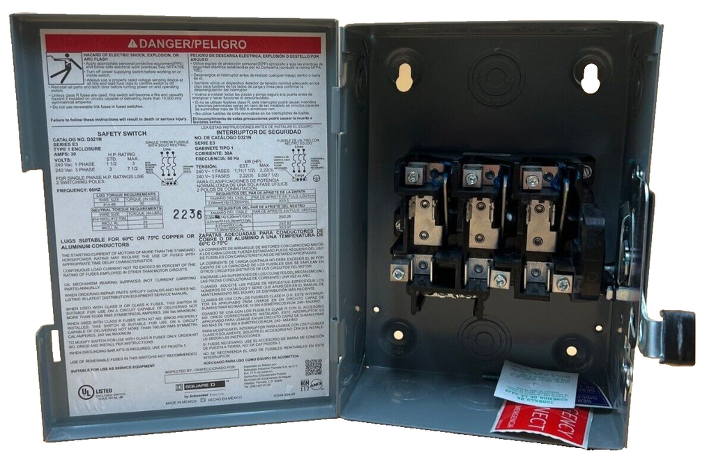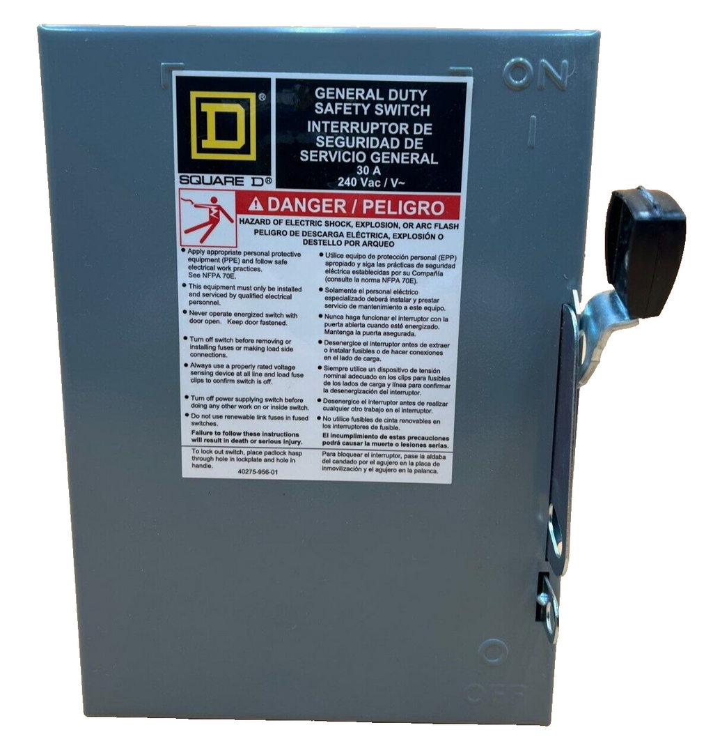 SQD D321N Safety Disconnect Switch 30A 3P 240V Indoor Encl