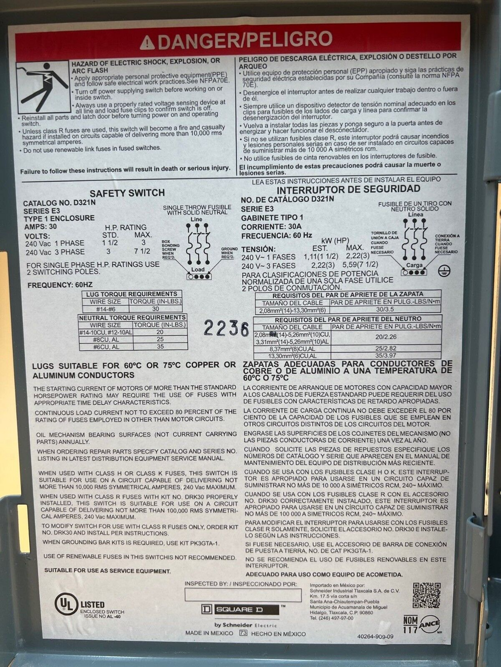 Square D D321N New