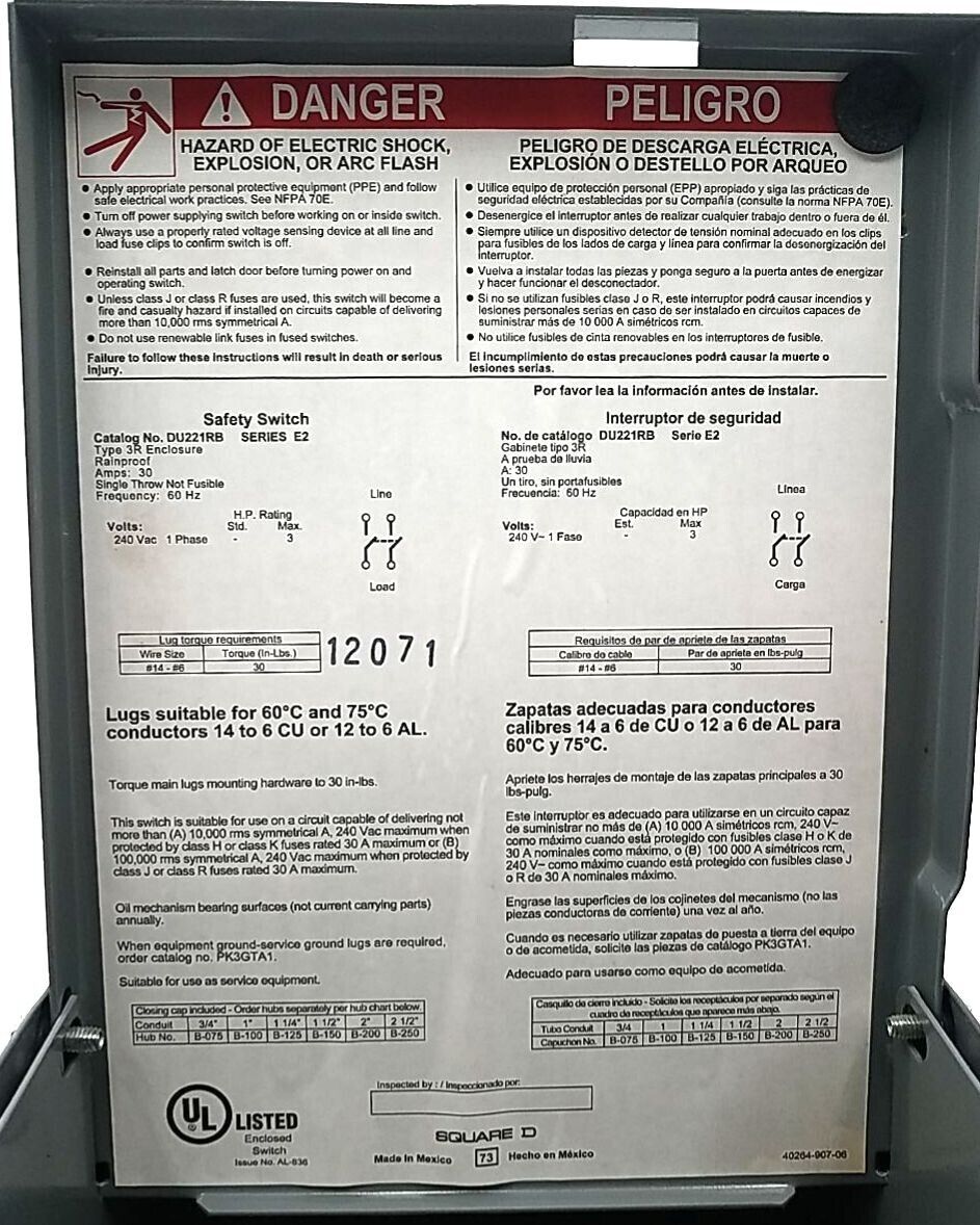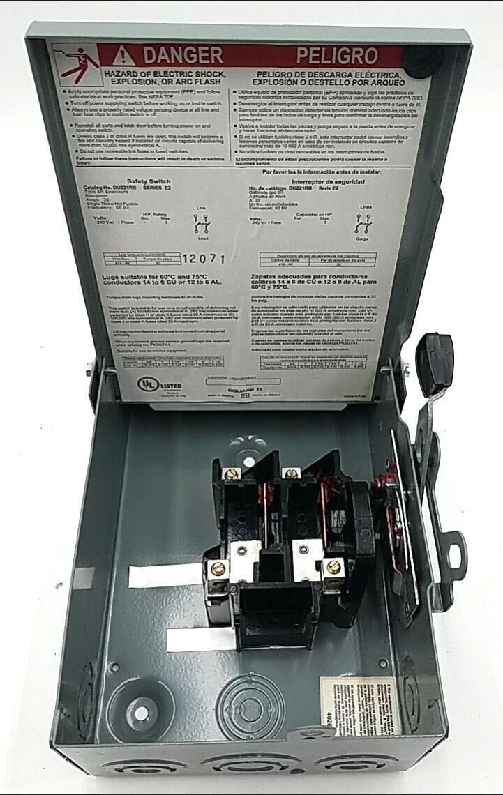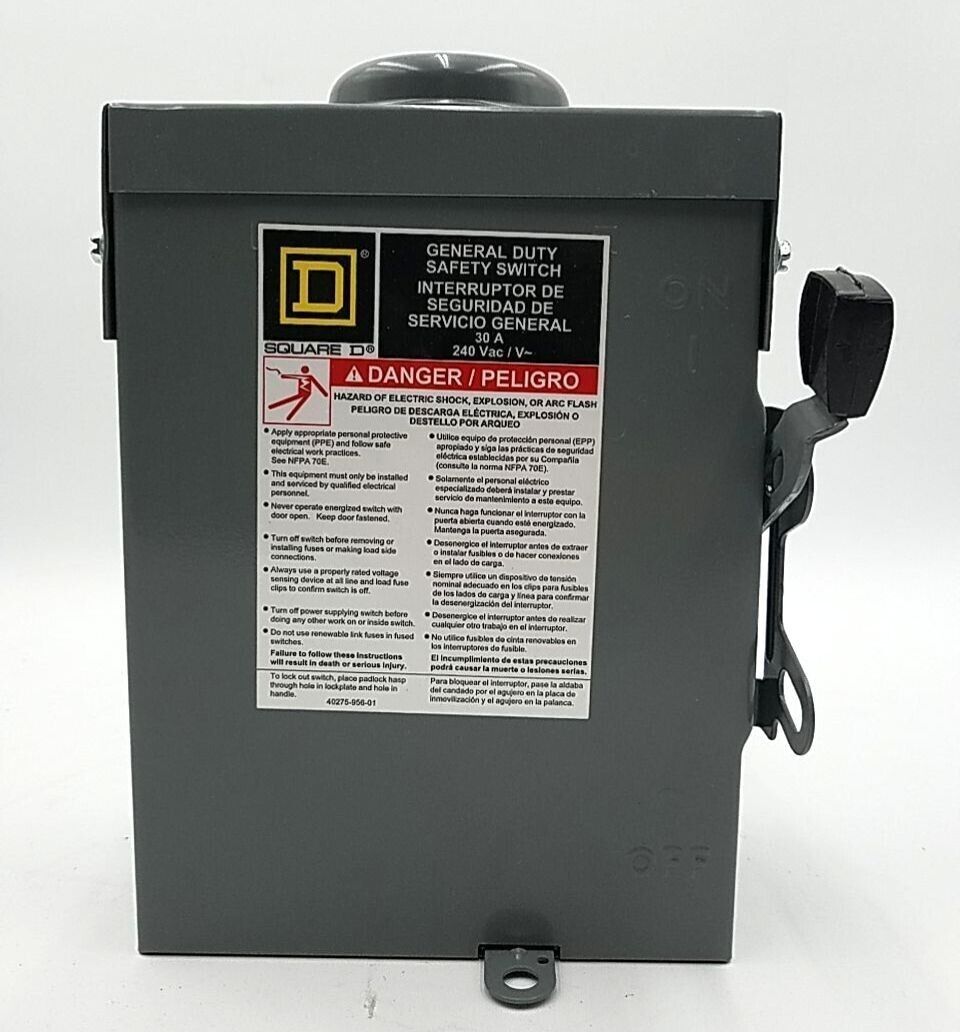 Square D DU221RB Safety Disconnect Switch 30A 2P 240V 1PH NEMA 3R Outdoor