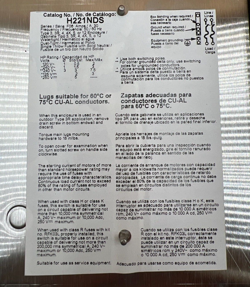 SQD H221NDS Safety Disconnect Switch 30A 2P 240V 4X Outdoor Enclosure