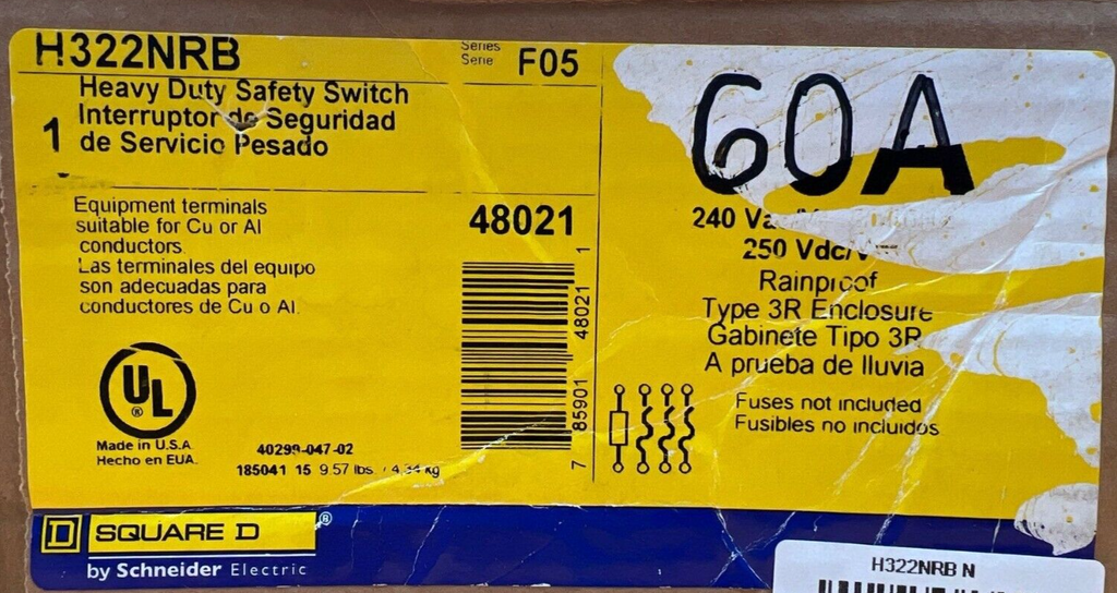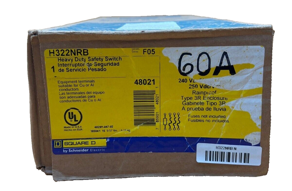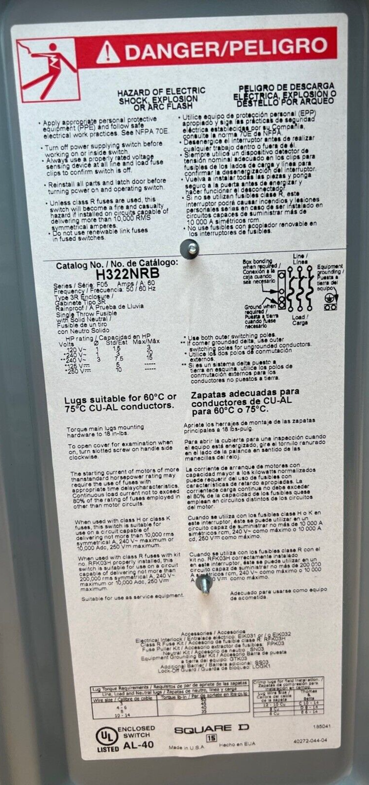 SQD H322NRB Safety Disconnect Switch 60A 3P 240V 3R Enclosure