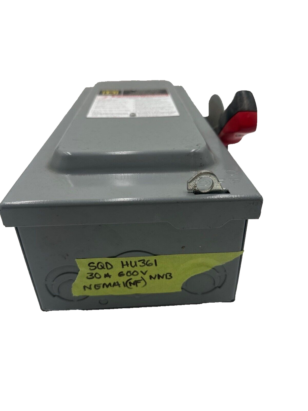 Square D HU361 Safety Disconnect Switch 30A 3P 600V 3PH Type 1 Indoor Encl