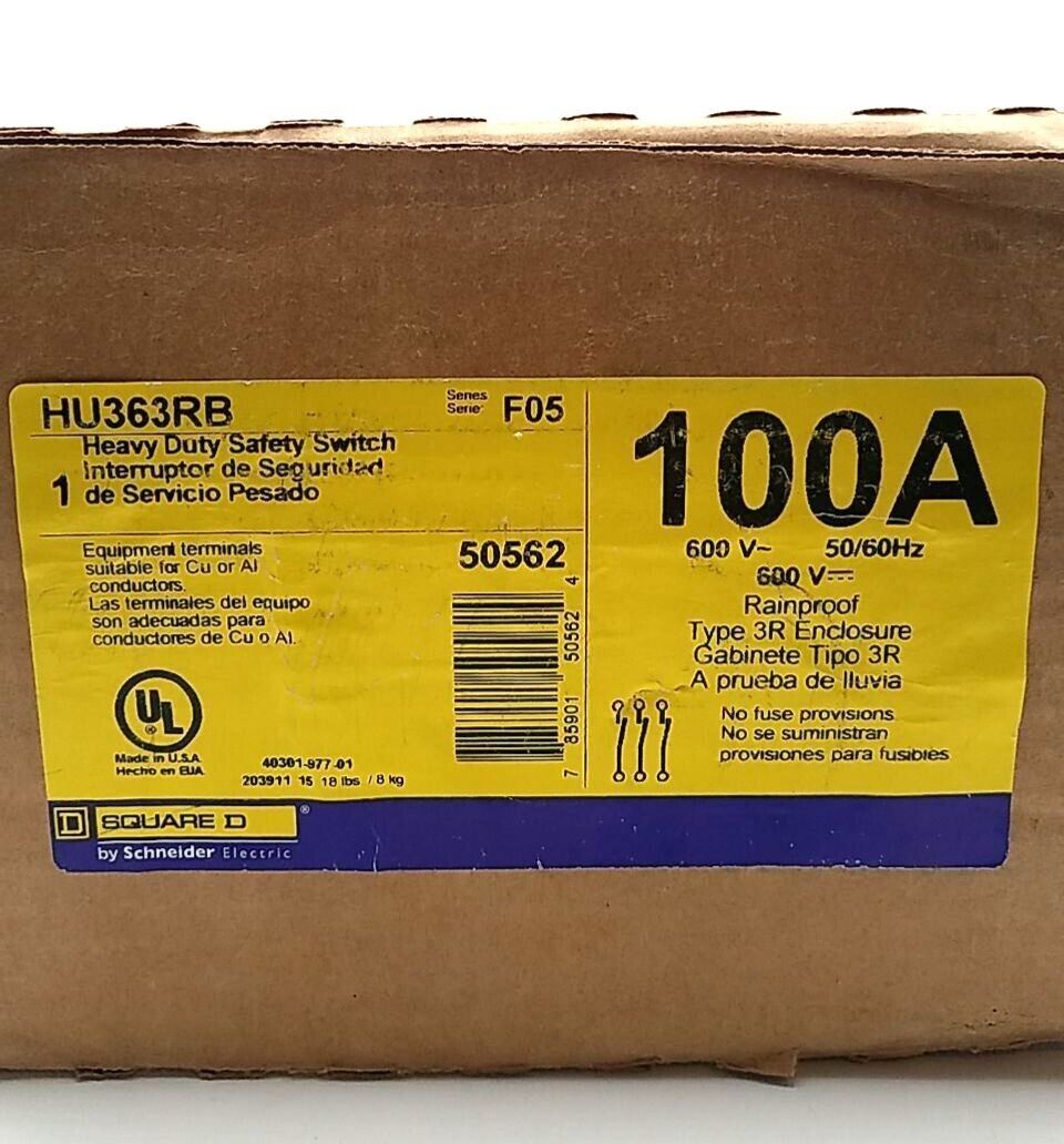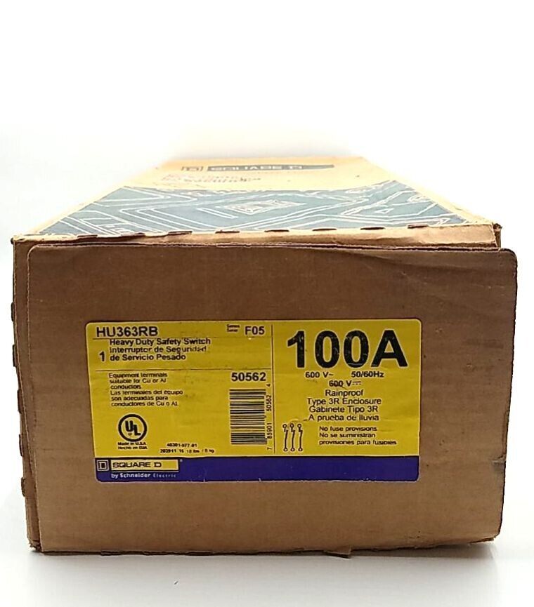 Square D HU363RB Safety Disconnect Safety 100A 3P 600V 3PH 3R Encl Outdoor