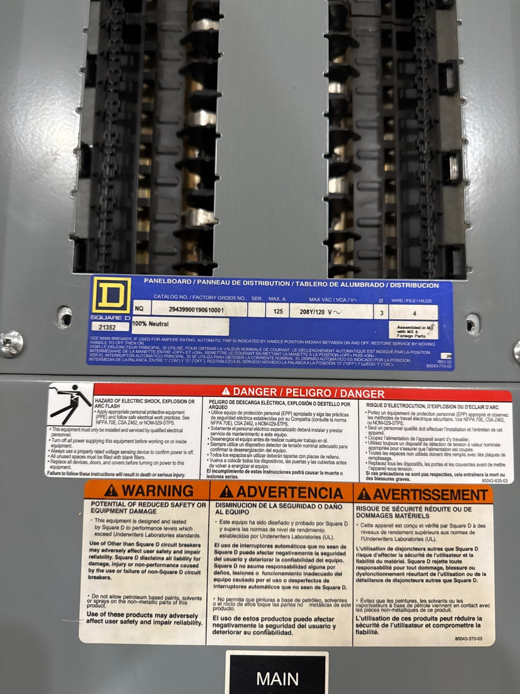 Square D NQ Panelboard 125A 208/120V 3PH 4W 30 Cir QBL32125 125 Amp MCB Panel