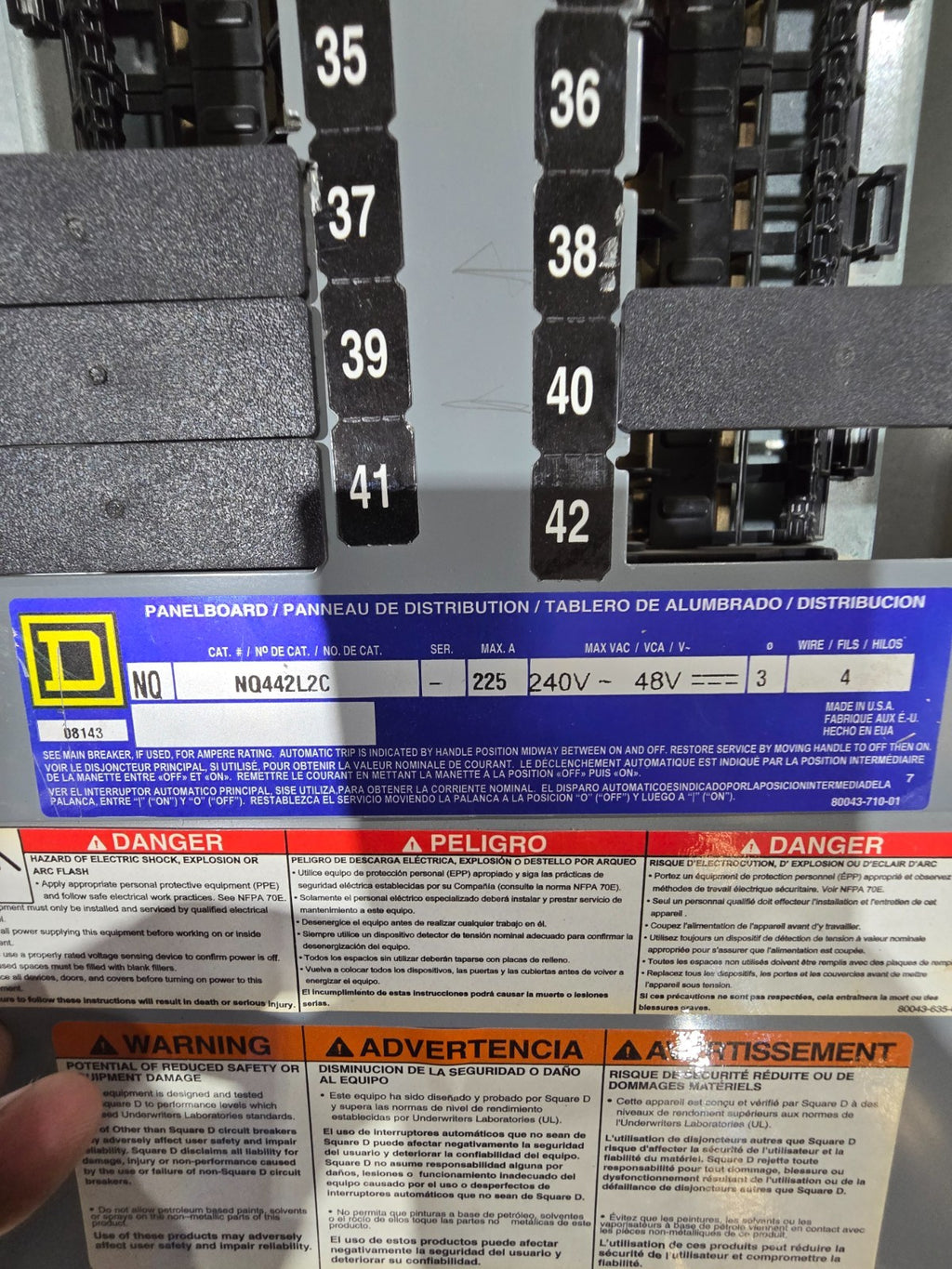 Square D NQ442L2C Panelboard 225A 240V 3PH 4W 42 Space MCB Panel QJL32150 150 Amp