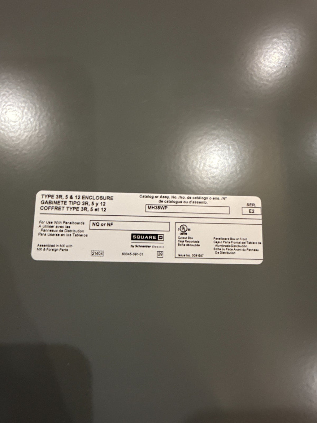 Square D NQ442L2C Panelboard 225A 240V 3PH 4W 42 Cir MLO 225 Amp Panel 3R Encl