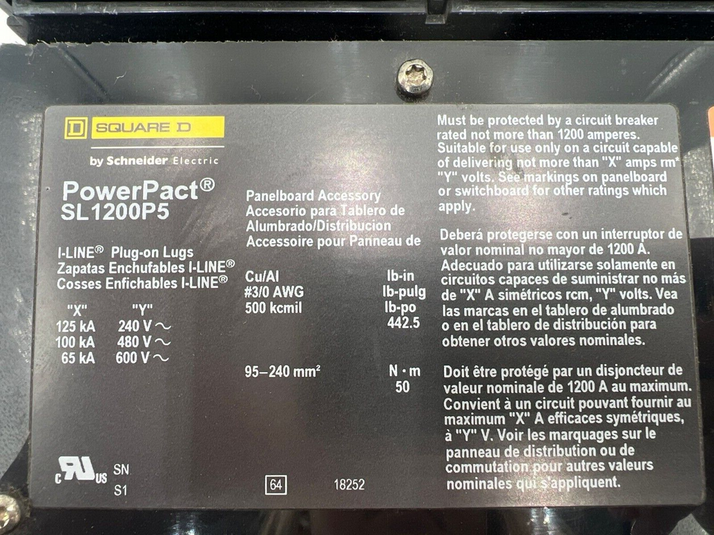 Square D SL1200P5 I-Line Subfeed Lug Kit Plug On Lugs 1200A PowerPact