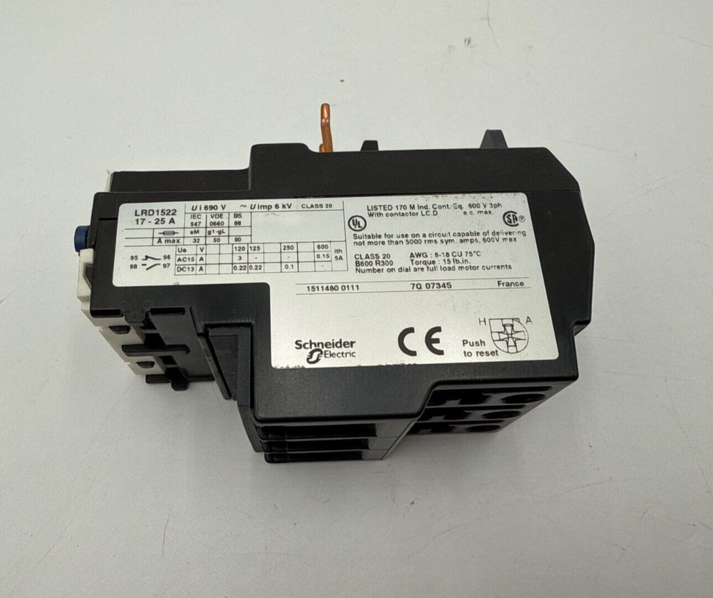 Telemecanqiue LRD1522 Thermal Overload Relay 17-25A 3P 600V Class 20