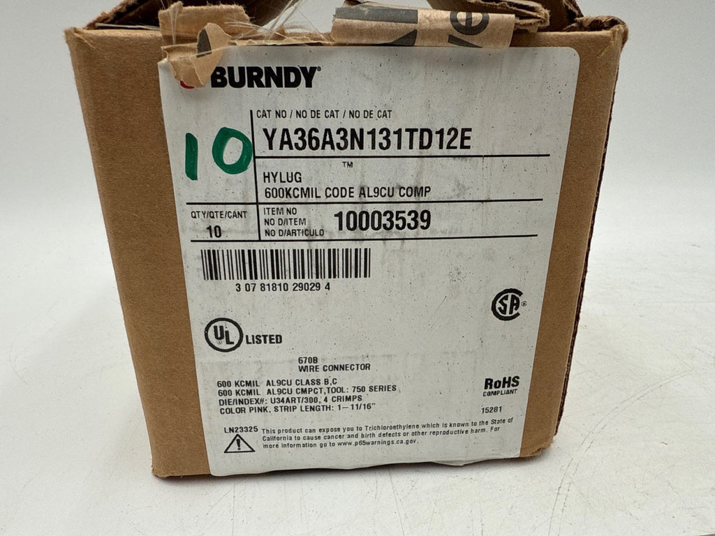 10PC Burndy YA36A3N131TD12E 2 Holes Aluminum Compression Lug Terminal Lot of 10