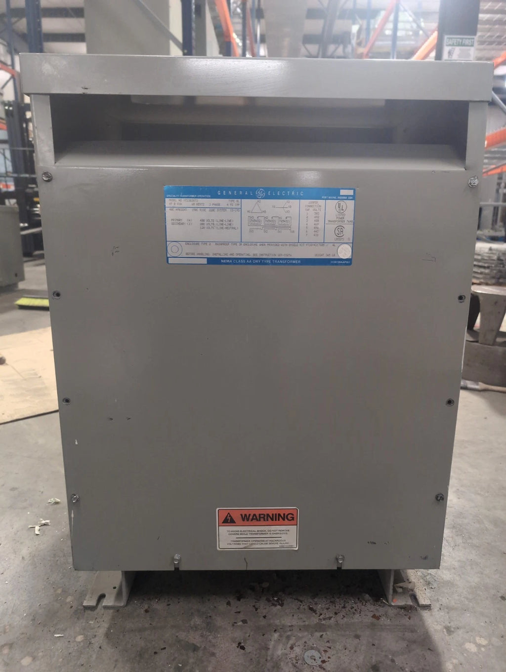 45 KVA GE 9T23B3873 Transformer Pri 480V Sec 208/120V 3PH Indoor QL Type 2 Encl