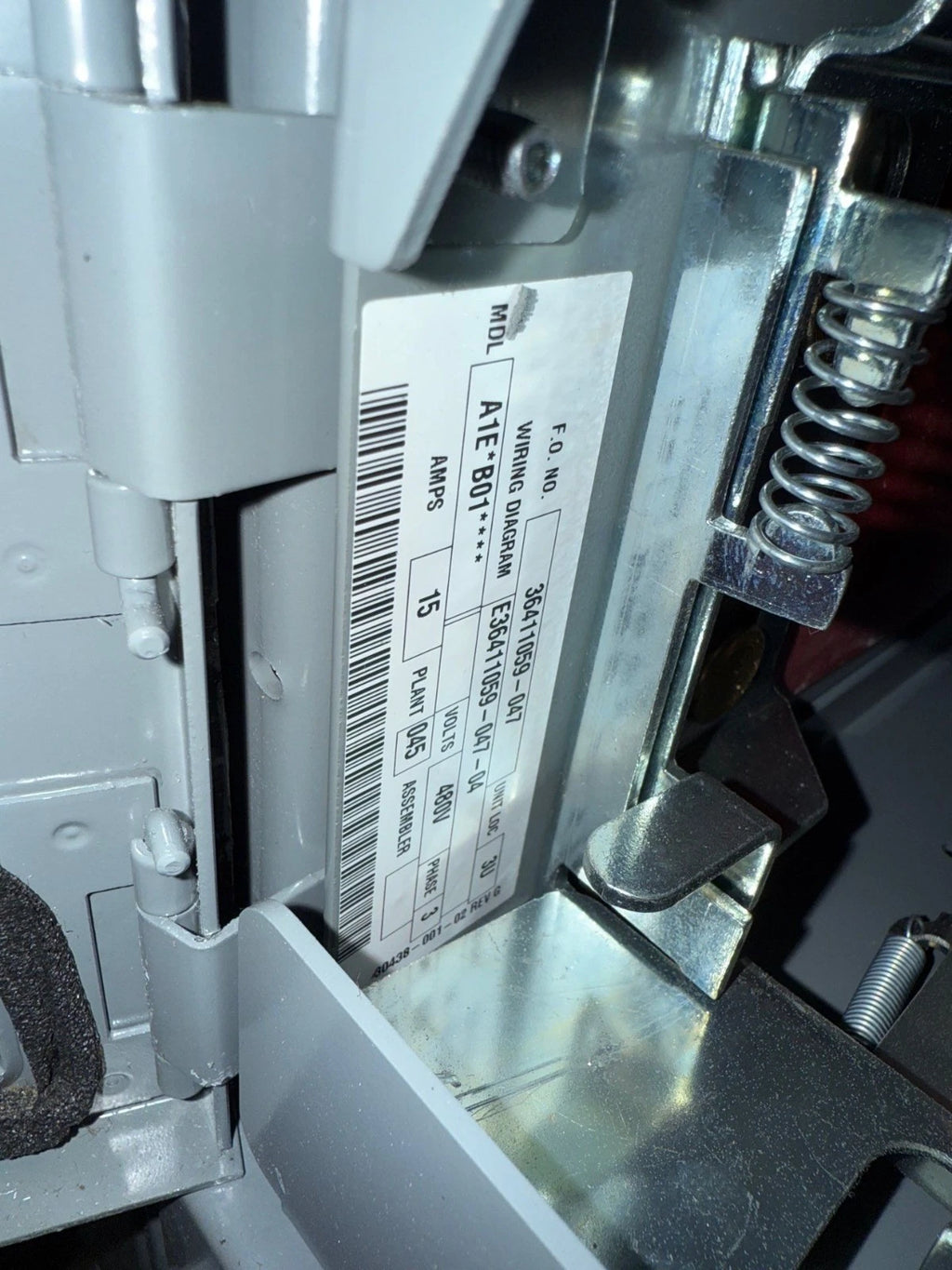 6" Square D Model 6 15A MCC Feeder Bucket HJL36015 Breaker 15 Amp HJL