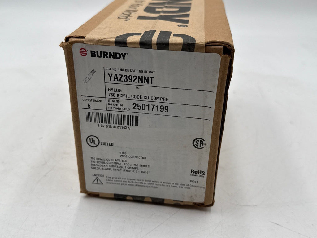 6PC Burndy YAZ392NNT Compression Lug 750MCM 1/2" Stud Long Barrel CU YAZ392N