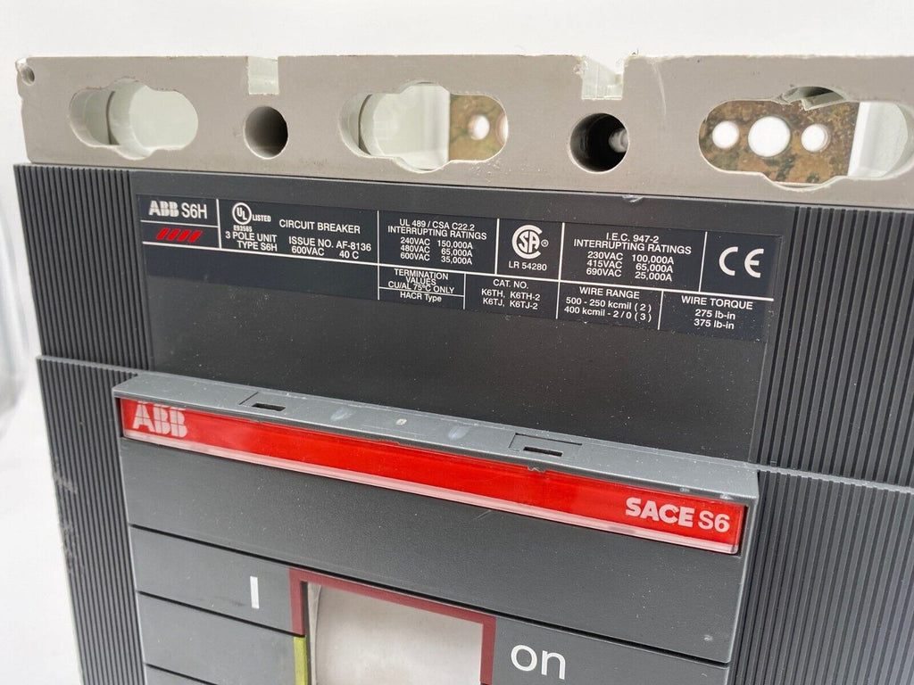 ABB S6H800 Circuit Breaker 800A 3P 600V 3PH Shunt Trip 24V 800 Amp S6H Trip Unit: SACE PR211 Condition Notes: Chipped in 2 places; refer to photos