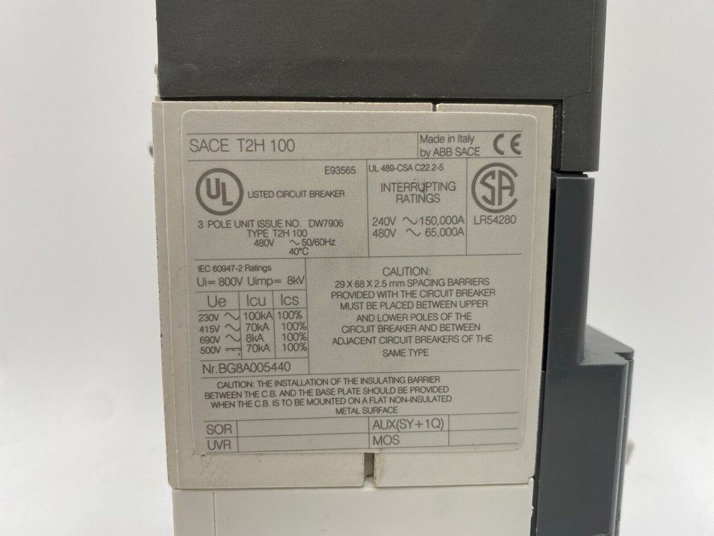 ABB T2H040TW Circuit Breaker 40A 3P 480V 3PH T2H 100 SACE Tmax 40 Amp 3 Pole Condition Notes: With top and bottom covers