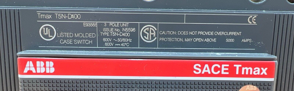 ABB T5N-D 400 400A 600V 3P Circuit Breaker T5ND400 400 Amp Lug to Lug
