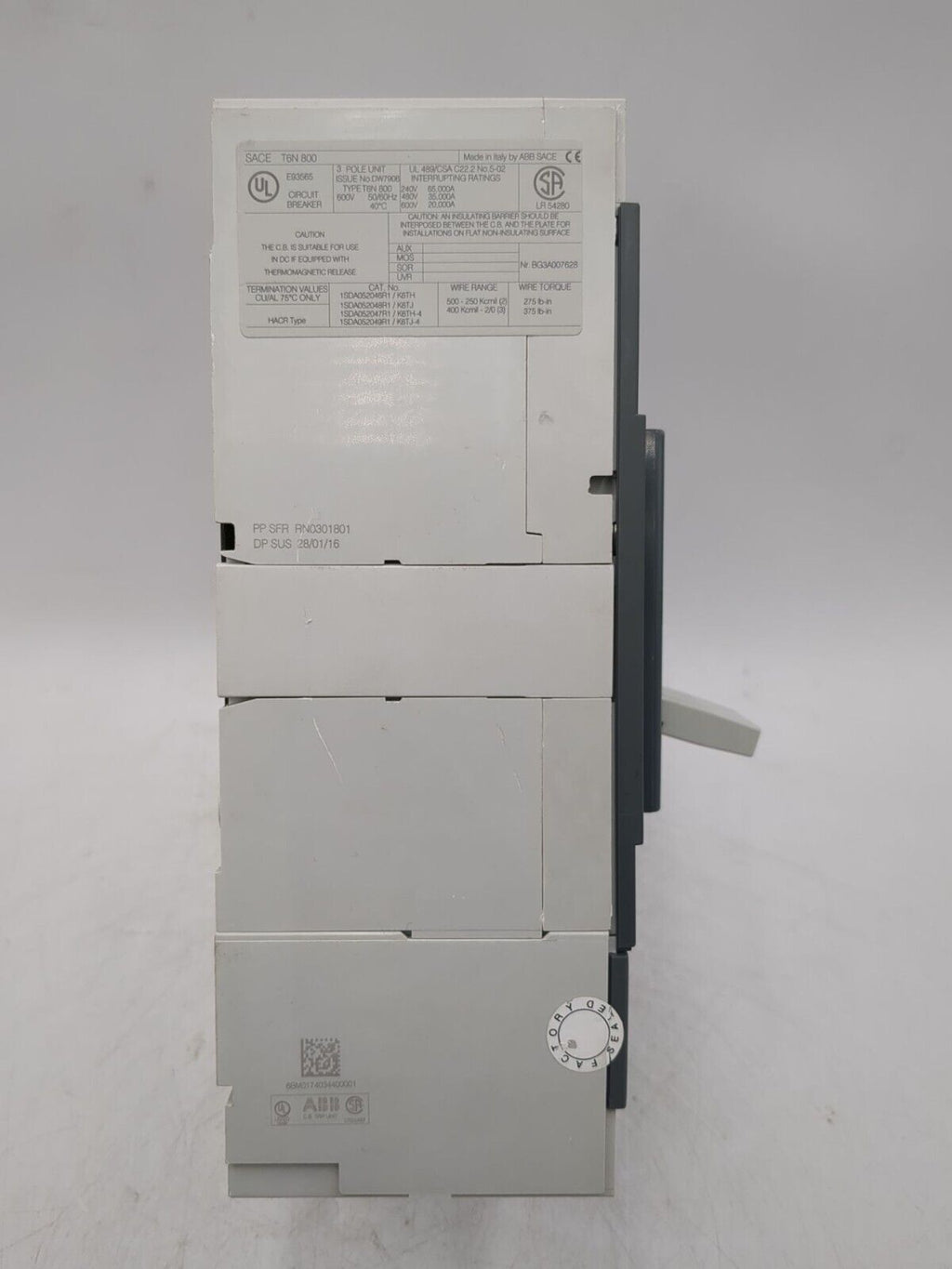 ABB SACE T6N 800 SACE Tmax Circuit Breaker 600A 3P 600V 3PH PR221DS LS/I 600 Amp Trip Unit