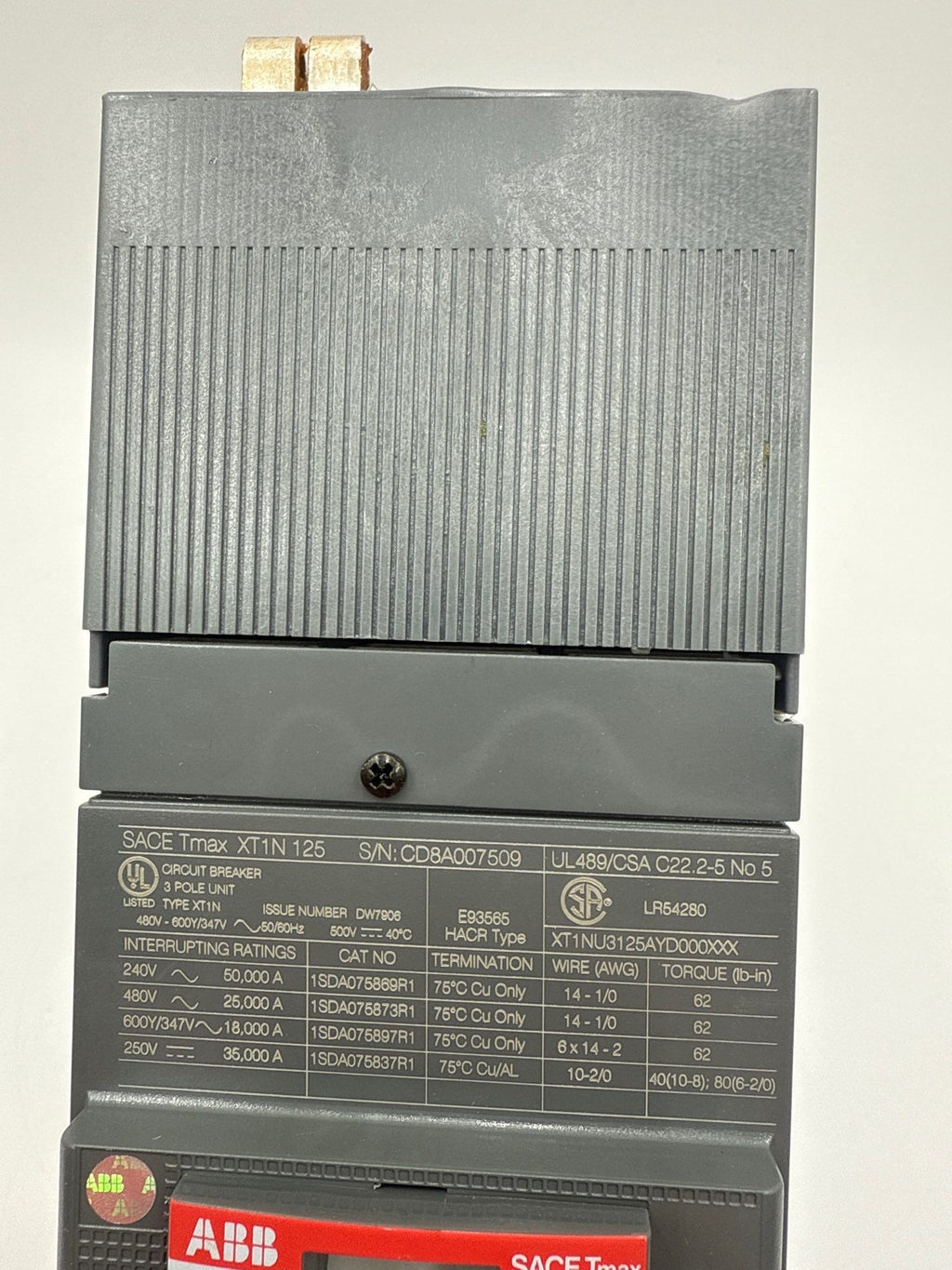 ABB XT1NU3125AYD000XXX ReliaGear Circuit Breaker 125A 3P 600V XT1N 125 125 Amp