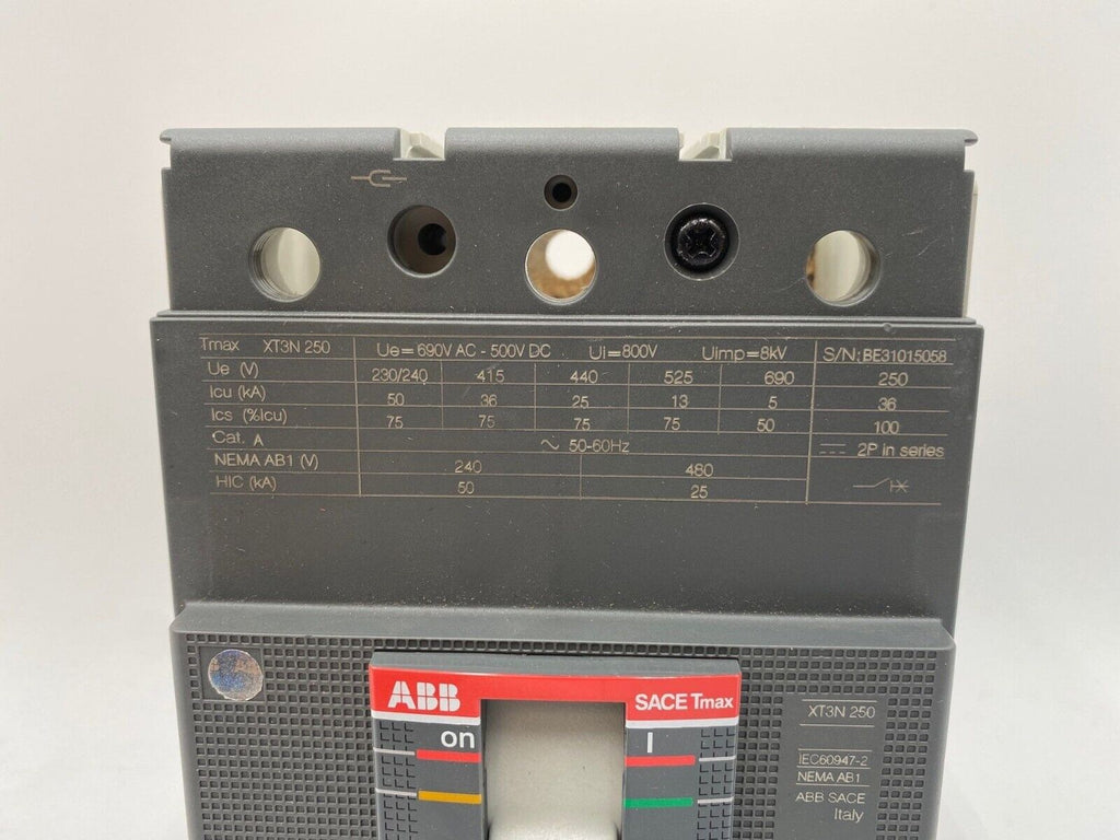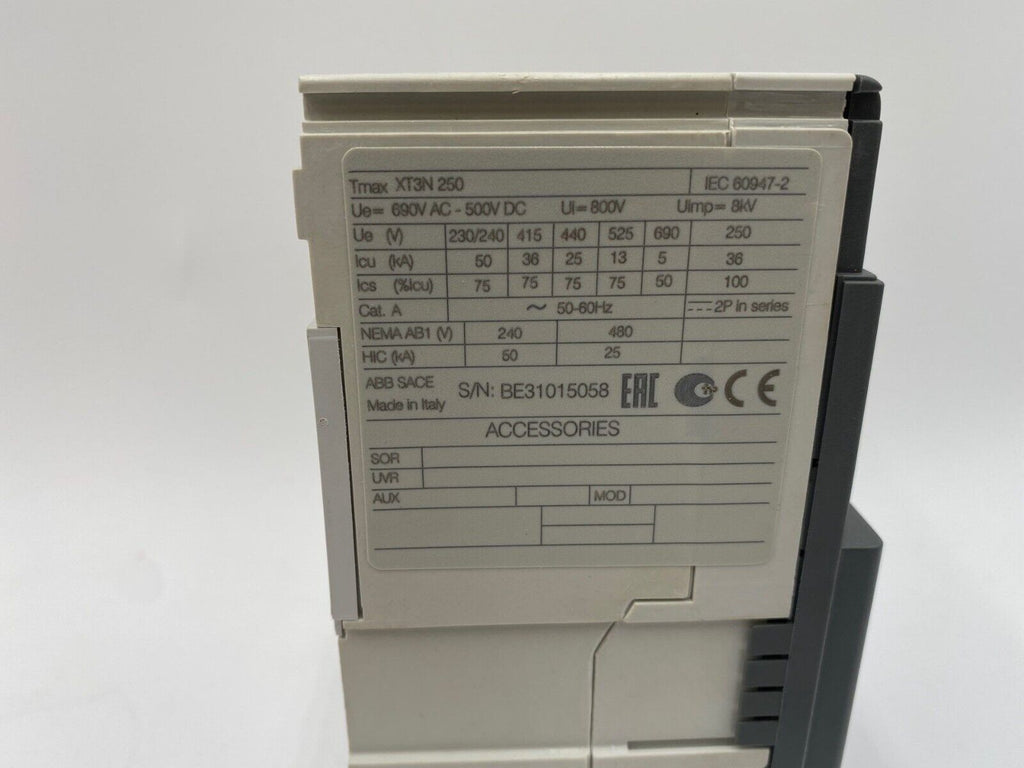 ABB XT3NE3200AFF000XXX Circuit Breaker 200A 3P 690V XT3N 250 SACE Tmax 200 Amp 3 Pole Condition Notes: With accessories