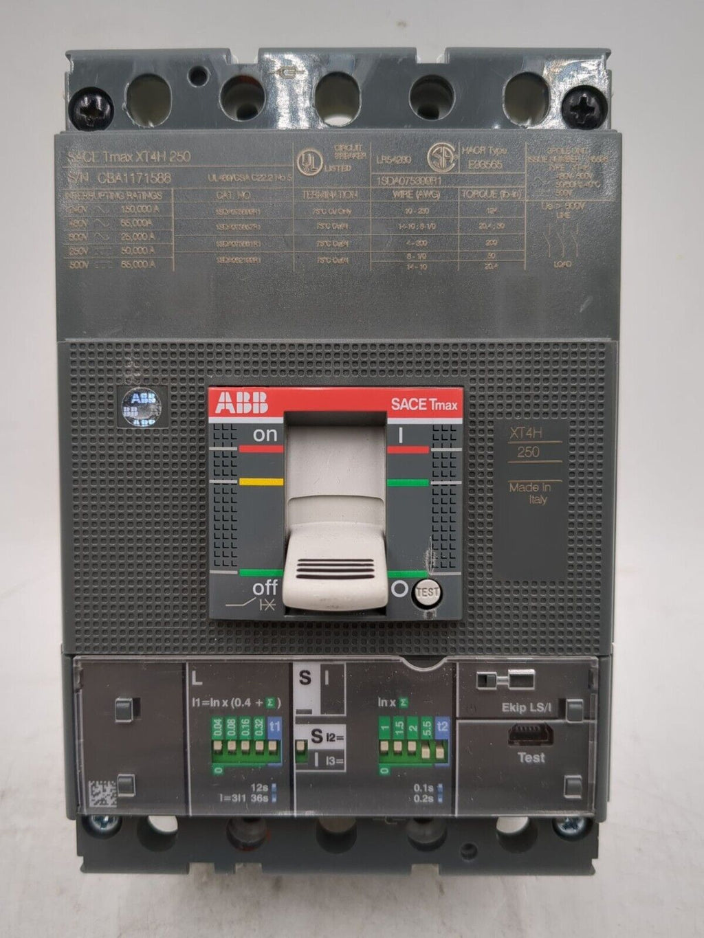 ABB XT4H 250, 3 Pole, 250 Amp, 600 Volt, 1SDA075399R1 Trip Unit, Circuit Breaker