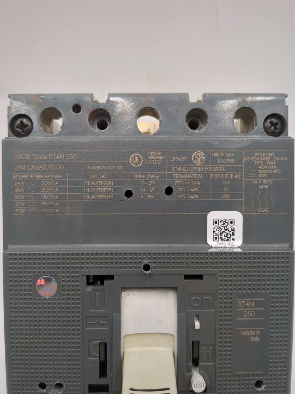 XT4NQ3250EFF000XXX ABB CB: XT4, 3P, 250AT/250AF, 65/25/18KAIC @ 240/480/600VAC, UL 100%, LS/I, Fixed (XT4NQ3250EFF000XXX)