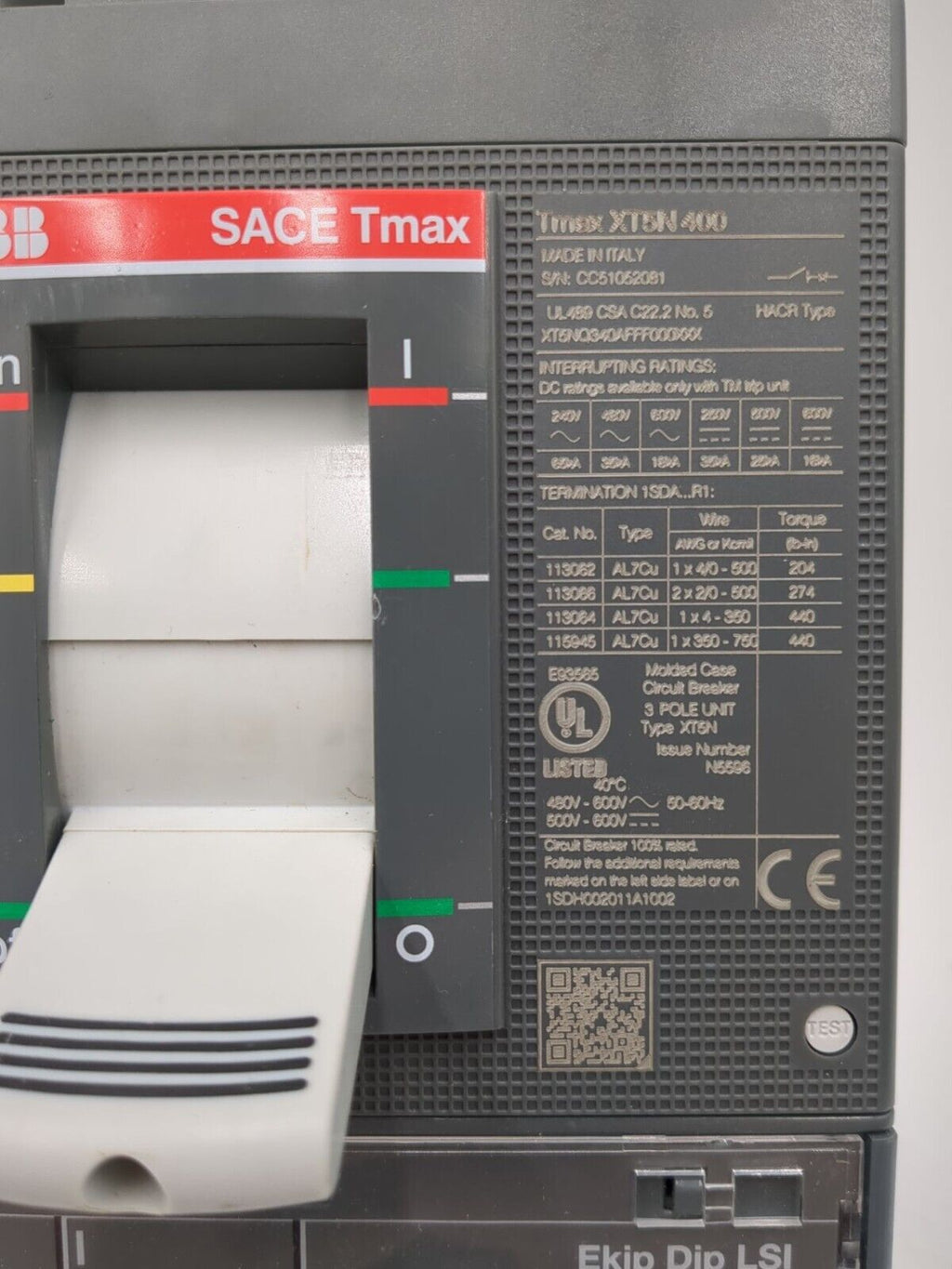 XT5, 3P, 400AT/400AF, 65/35/18KAIC @ 240/480/600VAC, UL 100%, LSI, Fixed