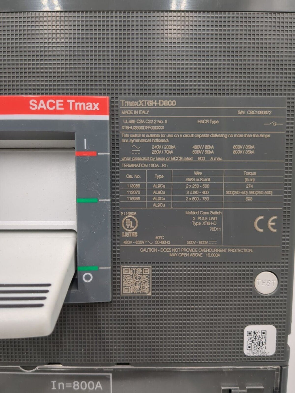XT6, 3P, 800AT/800AF, 200/65/35kA @ 240/480/600VAC, UL 100%, MCS, Fixed
