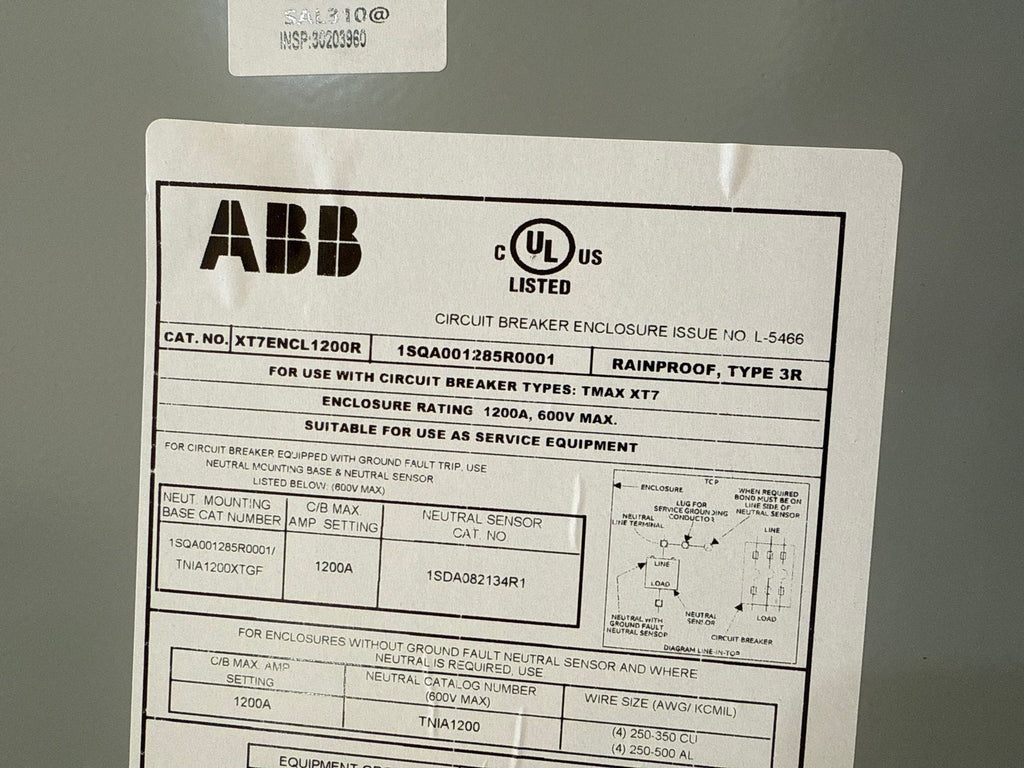 ABB XT7ENCL1200R Circuit Breaker Enclosure 1200A 600V Type 3R Rainproof