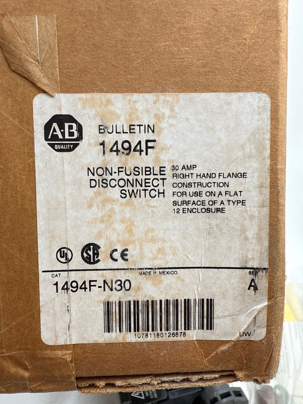 Allen Bradley 1494F-N30 Disconnect Switch 30A SER A 1494FN30 30 Amp