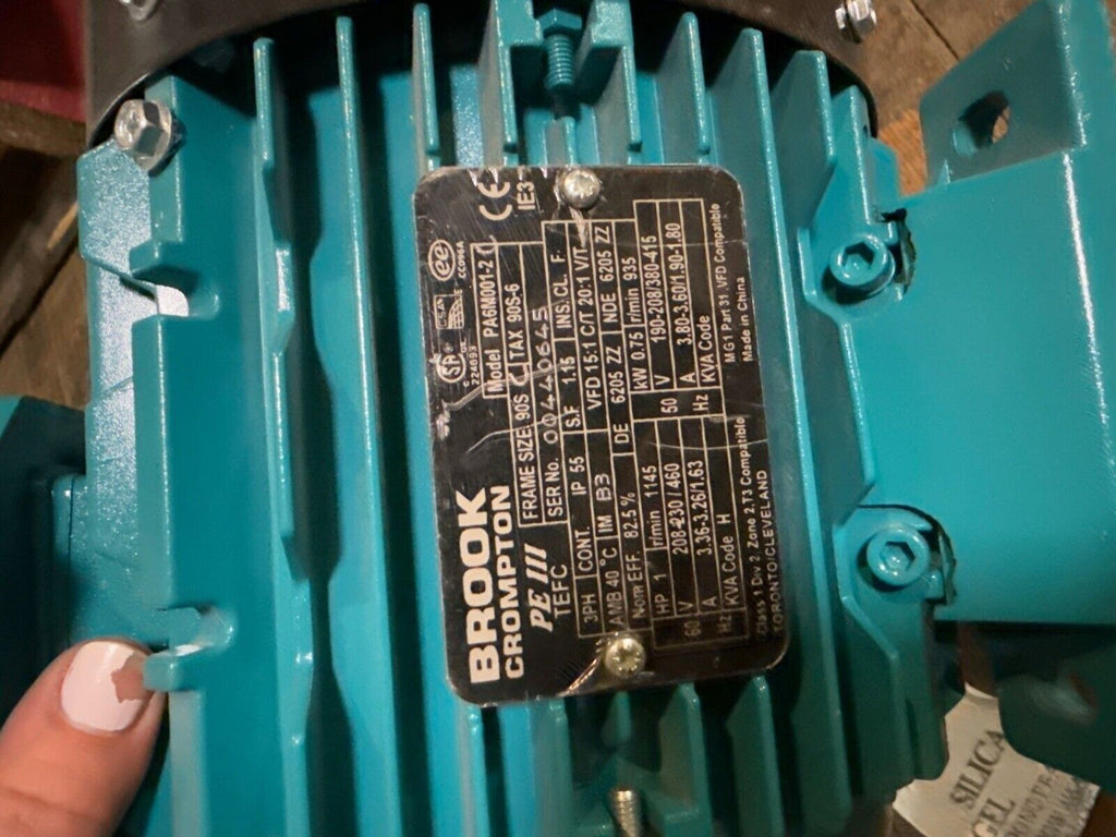 1HP Brook Crompton PA6M001-2C Electric Motor 3PH 208-230/460V 1145RPM Frame 90SC