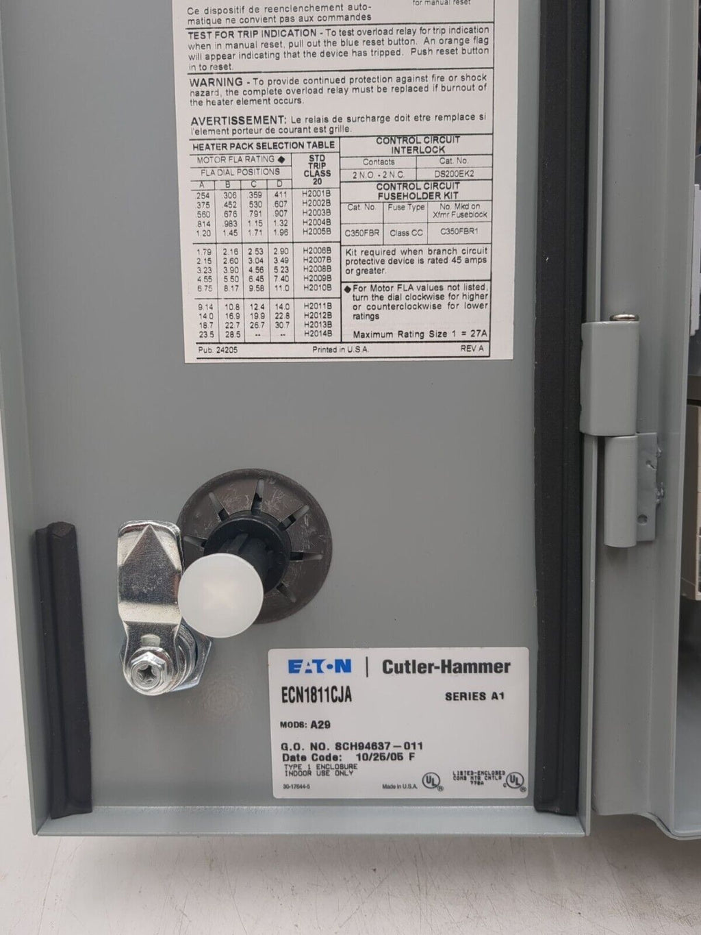 EATON/Cutler-Hammer ECN1811CJA, 3 PHASE, COMBINATION STARTER,