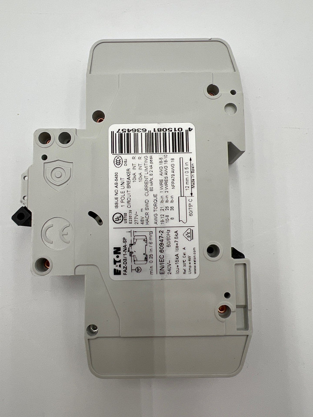 Eaton FAZ-D3-DIV-1-NA-SP Circuit Breaker 1-Pole 3A DIN Rail Mount