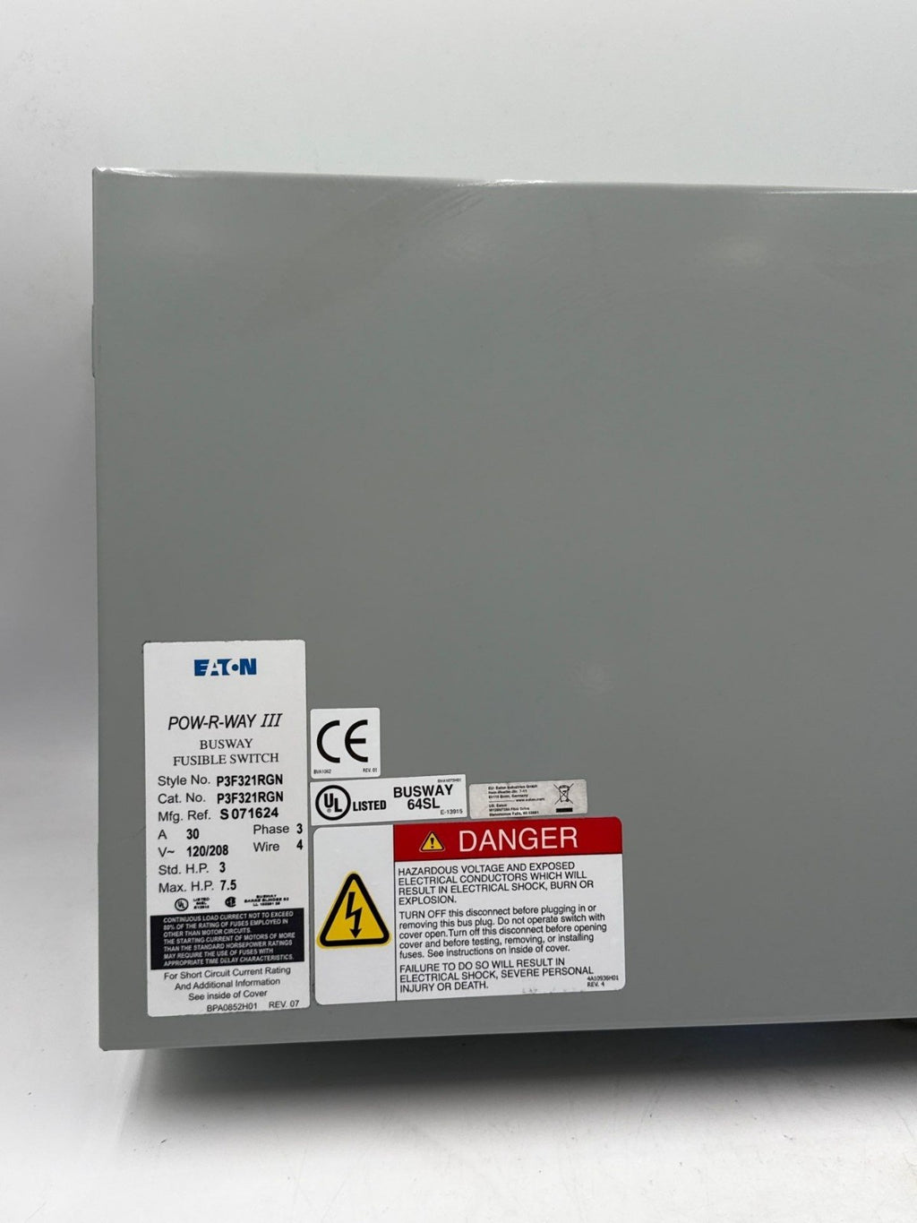 Eaton P3F321RGN Pow-R-Way III Busway Switch Bus Plug 30A 3PH 120/208V 4W Fusible