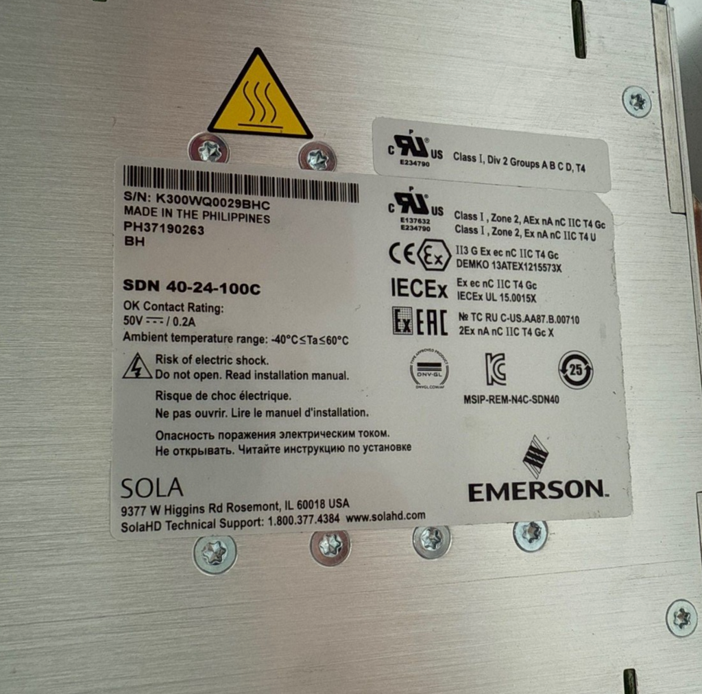 Emerson SOLA Hevi Duty SDN 40-24-100C Power Supply In 100-240V 12A Out 24VDC 40A
