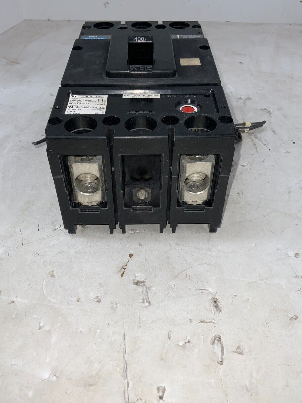 Fuji Electric BU-KSB2400 2 pole 400 Amp 600 volt SHUNT TRIP BU-FKH250D 250 volt AUXILIARY SWITCH BU-WKH 240 volt
