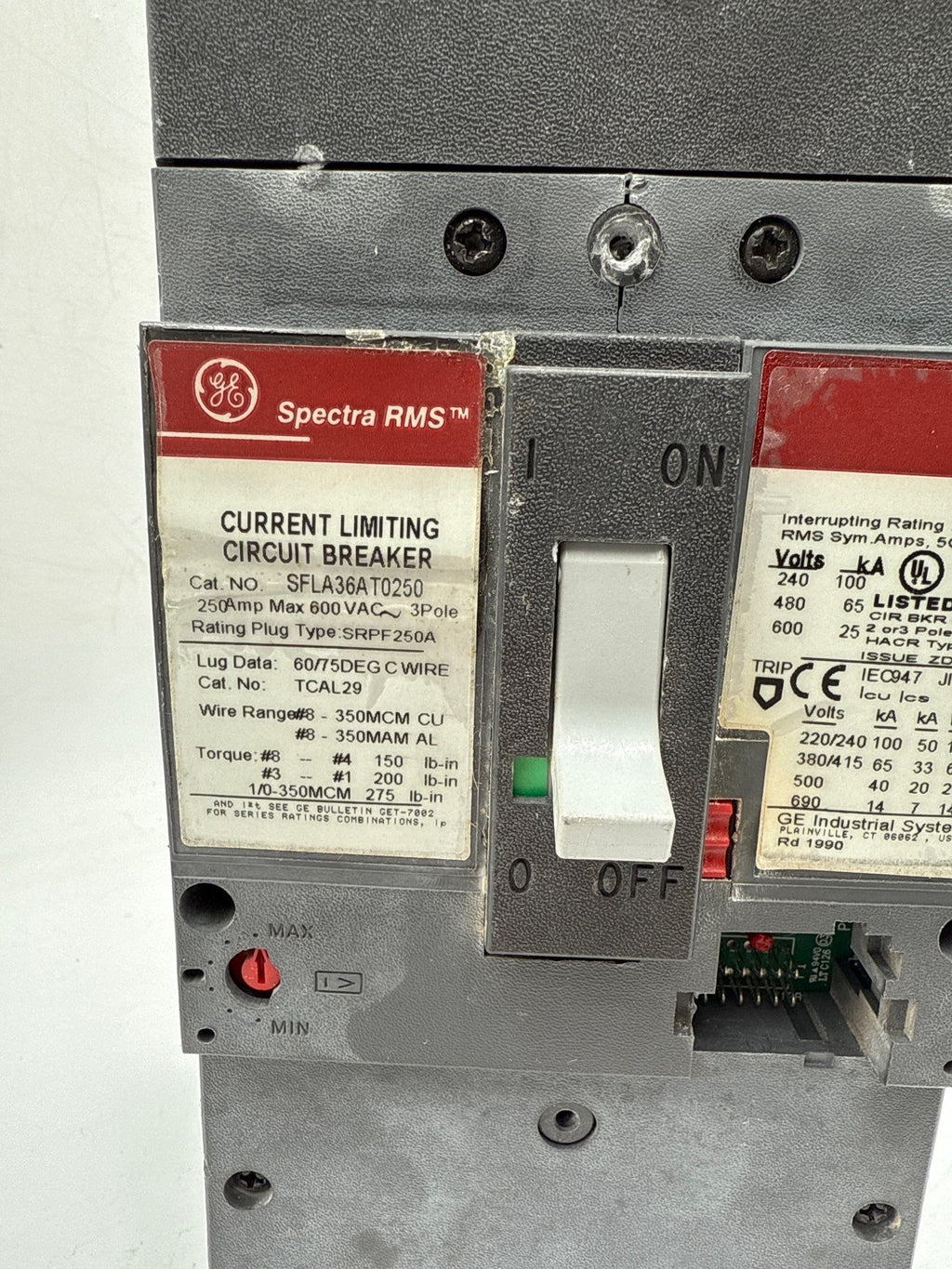 GE SFLA36AT0250 Circuit Breaker 250A 3P 600V FRAME ONLY 250 Amp 3 Pole NO PLUG
