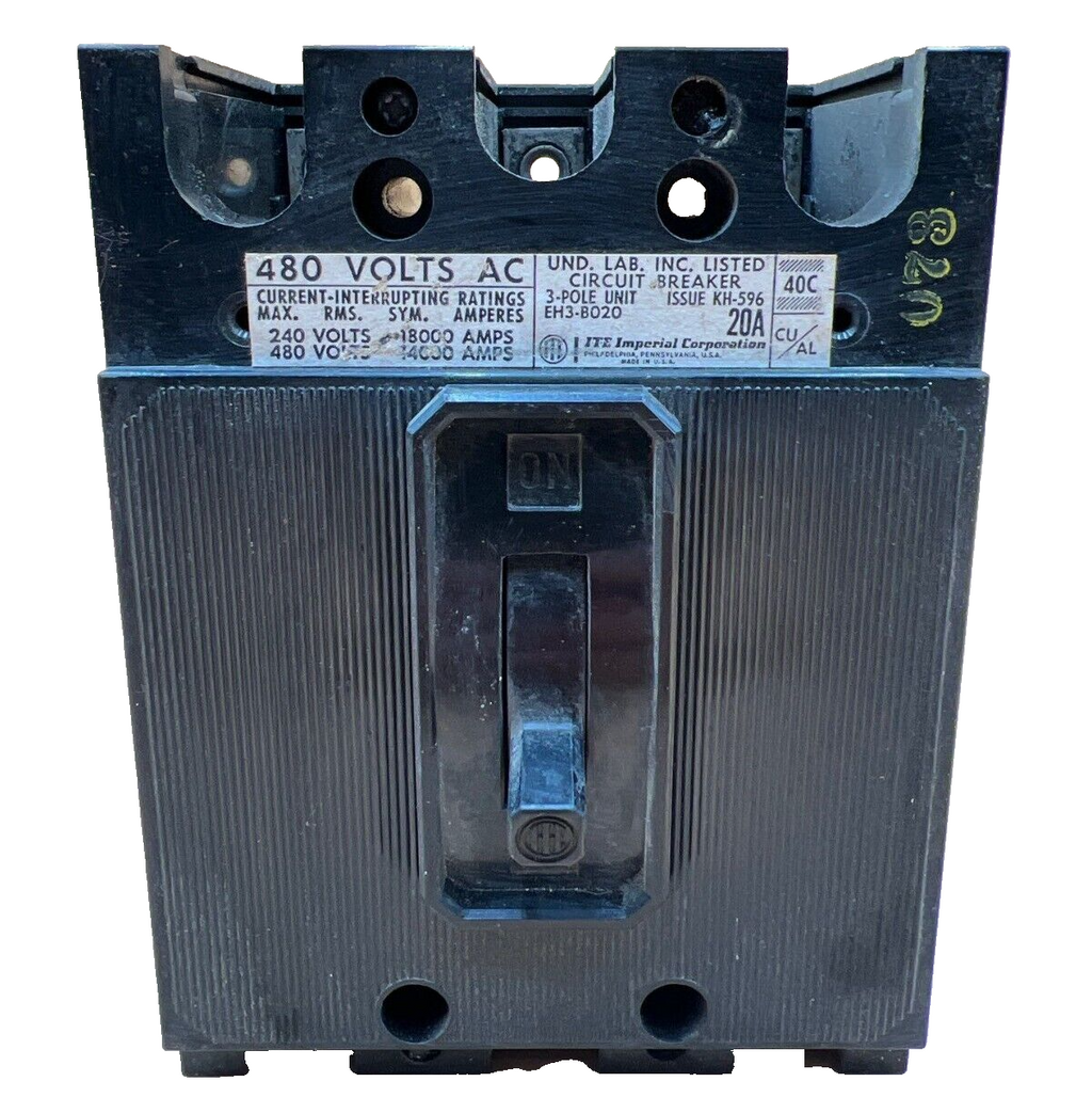 I-T-E EH3-B020 Circuit Breaker 20A 3P 480V 3PH Bolt on