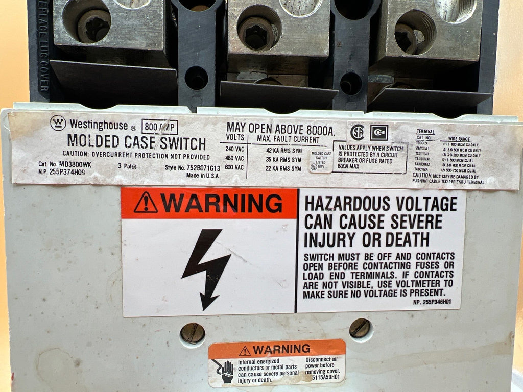 Westinghouse MD3800WK Circuit Breaker 800A 3P 600V
