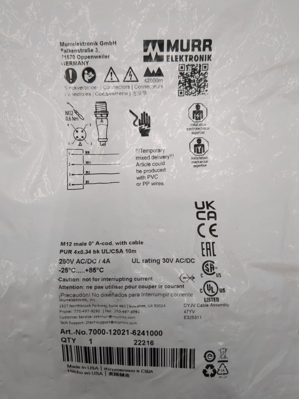 MURR Elektronik 7000-12021-6241000, M12 male 0 A-cod. with cable,