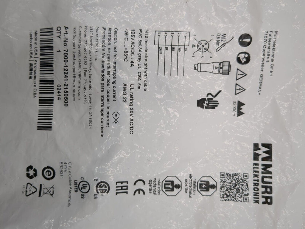 MURR Elektronik 7000-12241-2150500, M12 Female straight with cable,