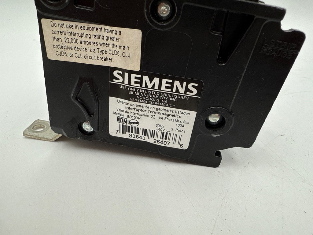 Siemens B3100H Bolt On Circuit Breaker 100A 3P 240V BLH 100 Amp 3 Pole 22kA